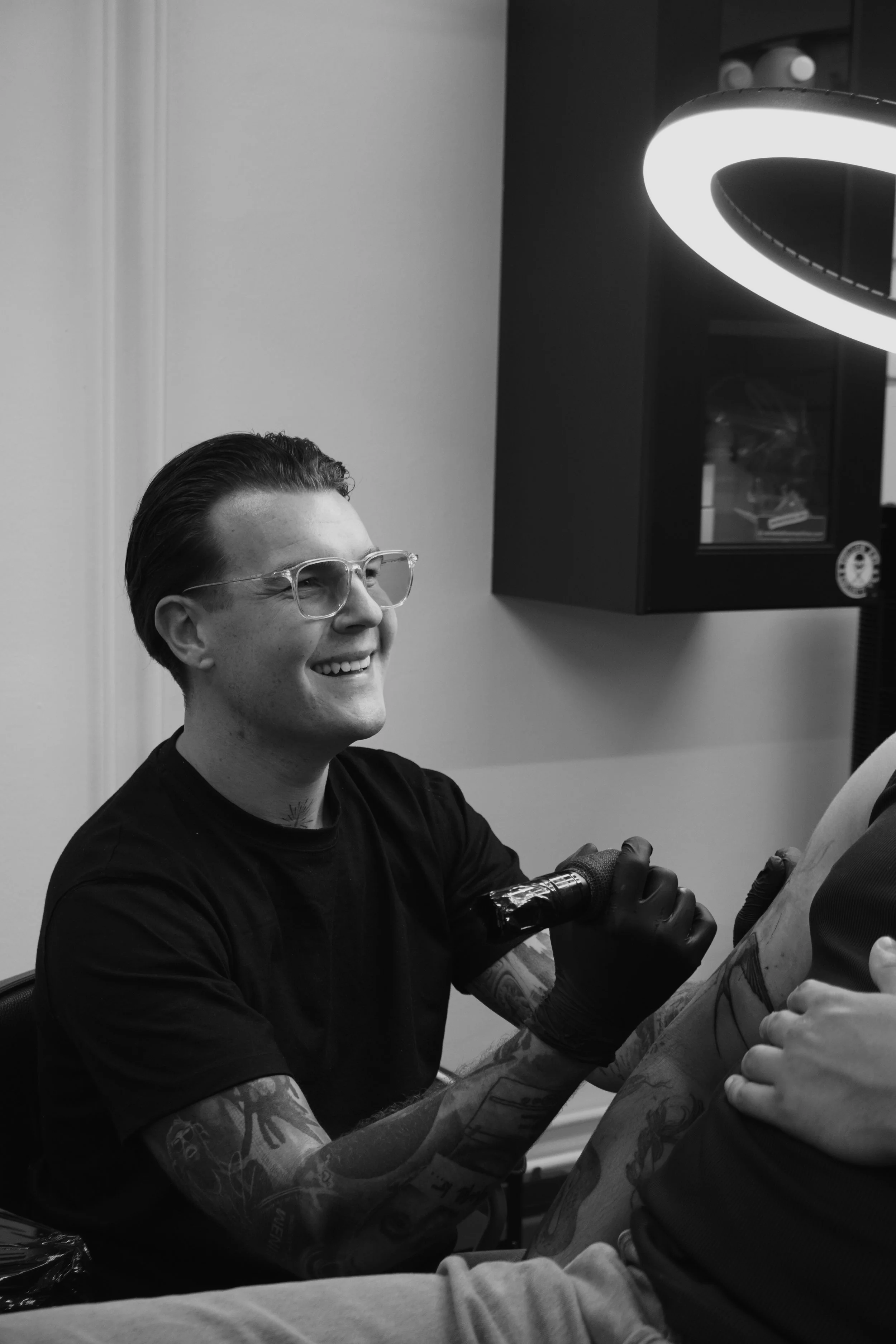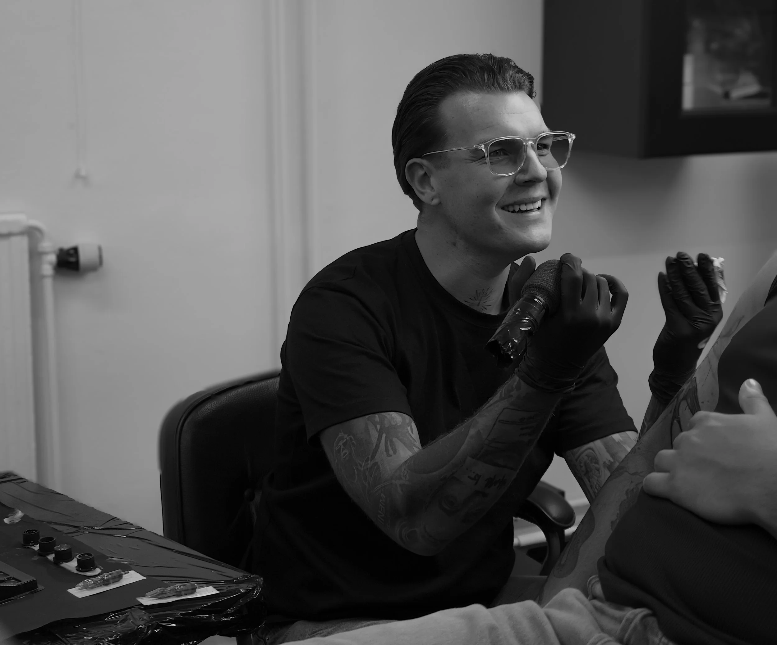 Influenced by architecture, photography, and observation of natural light, Wille studies structure and composition in everyday surroundings and translates those principles directly into his work. He particularly enjoys large-scale, multi-session projects where depth, contrast, and body flow can be fully developed, creating cohesive tattoos built to last. His goal is not only to produce a strong tattoo on the day, but one that still holds its impact years later.